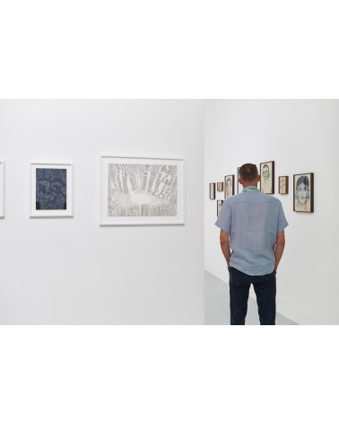 Also exhibiting for the first time at Paréidolie is Nicolas Aïello, an artist of time and handwritten trace as testimony of a relationship with writing, whose work is collected by major French institutions (Centre Georges Pompidou, National Library of France, among others). In his work, interwoven lines form something like geological layers that overlap, drawing the gaze toward distant lands and other temporalities. Often conceived as distant transpositions of documents, photographs, and the work of historians such as Shapiro or Warburg which he collects, these drawings—also to be seen as handwritten attempts at writing—disrupt any fixed or stable reading.