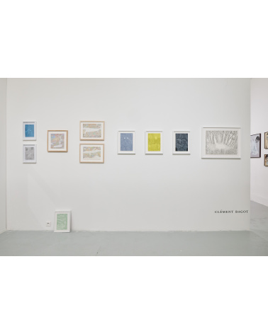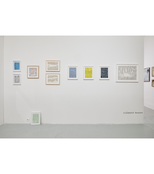 For the second consecutive year, we are also presenting the work of Clément Bagot, who explores in his own way a meticulous approach in which drawing becomes detail, leading the eye to question scale—hesitating between macrocosm and microcosm, views from outer space or imagined territories resembling city maps. The new series exhibited for Paréidolie marks a spectacular shift with the reintroduction of figuration, yet a pareidolic figuration in which images unfold through almost antinomic layers, with fractured scales and ambiguous relationships to reality, creating a mise en abyme effect. The human presence, appearing in the form of robots, seems to reaffirm that this art also draws from the fantastical worlds of comics and science fiction.