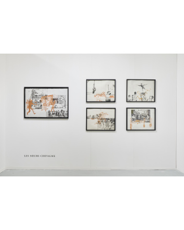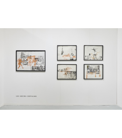 For this edition of Paréidolie, we will also present the new series “Off-Screen” by the Sœurs Chevalme, who on this occasion offer drawings that expand the range of historical image sources underlying their work. Their approach explores the relationship Western culture has had—and continues to have—with the rest of the world, addressing the unspoken legacy of colonialism, investigating underground cultures within the communities they encounter, and examining the historical ruptures that shaped the 20th century. Their work continuously intertwines scientific inquiry with a reflection on the emergence of art in the contemporary world.