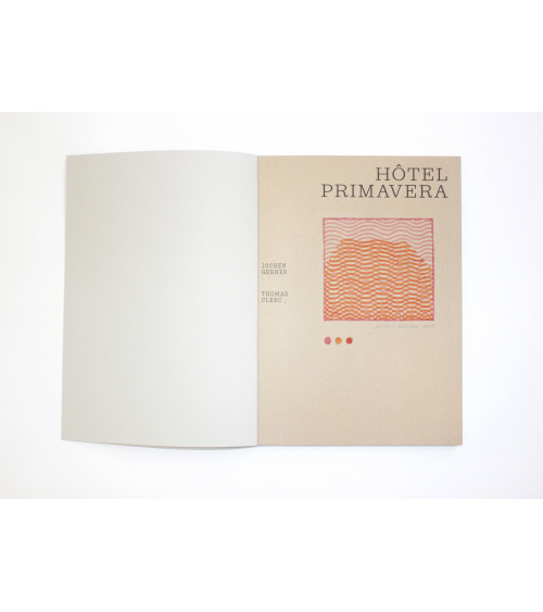 Prefaced by a postcard signed by Marcel Duchamp and found by Jochen Gerner, the book, which has the feel of a detective novel, is divided into a number of themes showing the artist's latest works: Carte postale Hôtel Primavera ; the serie Bages 2023, Gris Paris 2022 ; Éclipse 2023 ; Oiseaux 2021 ; Villas provençales 2023 ; Livre de cuisine 1867 2022 ; Planche de Pictogrammes (Les 2 Scènes Nationales de Besançon, Formes et Matières 2020-2021 and The New York Review of Books, Modules mobiles 2022) ; En route vers le futur 2022.