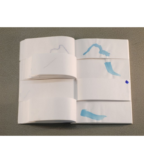 When a few years ago, Vera Molnar bought a small notebook whose pages were each divided into four strips, Raymond Queneau's opus, One hundred thousand billion poems, may have come to mind. But Vera Molnar set her own rules here. With a gouache pen, using four different colours and four different thicknesses she drew, on about a hundred pages, outlines of Mount Sainte-Victoire so dear to Cézanne's heart.