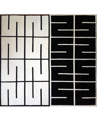Vera Molnar realizes for the Gallery 8+4 an exceptional carpet « Fluctuation » in hand-made tufted black and white wool yarns, based on an 1960’s original composition. Using the possibilities offered by the interplay of materials and tufting techniques to give her composition an original vibration, the artist delivers here, without a doubt, one of her most amazing recent creations.