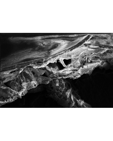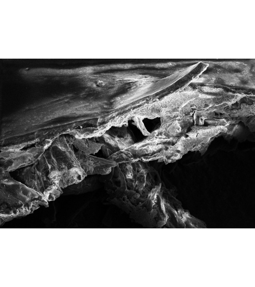 Structure of black and white baryta paper, scanning electron microscope