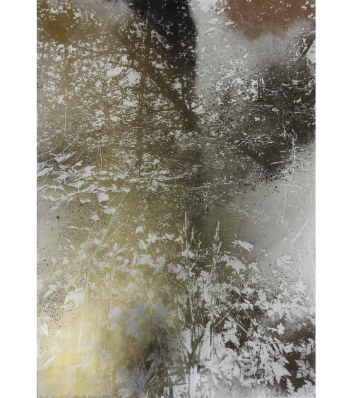 Avec les poussièrographies, ces éditions photographiques révélés par la poussière, Lionel Sabatté convoque des images inédites de sous-bois rythmées par les troncs, par le fouillis complexe de la canopée ou des broussailles. Par son geste engagé de révélation par la poussière et les pigments à l’or, Lionel Sabatté questionne la part mystérieuse qui entoure chaque représentation photographique. À la fois image explicite d’un lieu factuel et surface striée par la matière ou les couleurs lumineuses, ces créations, éditées à 5 exemplaires, interroge finalement l’essence même de la peinture. Télécharger, les textes de Yannick Mercoyrol et Henry-Claude Cousseau pour en savoir plus sur le travail de poussière de Lionel Sabatté.