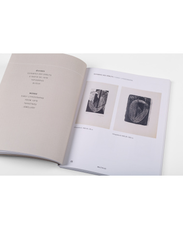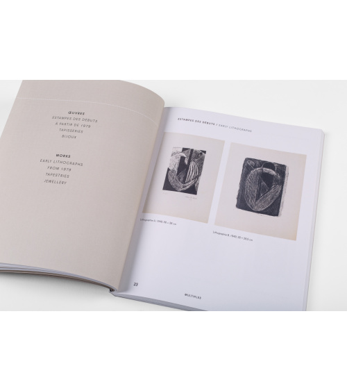 Cet ouvrage se propose d’en dresser l’inventaire exhaustif et d’en relater l’histoire : après 11 premiers travaux réalisés entre 1949 et 1950, il faudra attendre 1978 pour que l’artiste produise de nouveau des séries d’estampes ou multiples. Seulement 22 séries seront réalisées en 40 ans : sérigraphies, livres d’artiste, lithographies, aquatintes et multiples inclassables qui se révèlent être des originaux à plusieurs exemplaires, ce à quoi s’ajoutent deux bijoux.