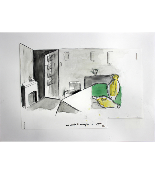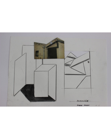 Cette union prend chez Buraglio la forme de dessins, certains simples croquis, d’autres plus détaillés et aboutis. Un ensemble de vêtements sur un portant, une cheminée d’usine, un coin de mur ou un balcon d’une maison italienne, une colline abritant un hameau, un tronc noueux. Comme pour mieux magnifier cette perception du monde, Buraglio a imaginé pour l’occasion une série étonnante de collages. Parmi ceux-ci, il enchâsse, dans une logique de montage très épuré, des morceaux de cette réalité volée. Plossu y répond par un choix d’images noir et blanc au cadrage serré. Si la plupart s’amusent à capturer la lumière et lui donner un poids singulier, d’autres s’aventurent vers une déambulation du regard envers les choses les plus ordinaires du réel mais soudain illuminées par le regard du photographe. Dans ses fameuses Histoire(s) du cinéma, Jean-Luc Godard nous rappelait « une image n’est pas forte parce qu’elle est brutale ou fantastique, mais parce que l’association des idées est lointaine et juste ». Plossu, comme Godard, mais aussi Buraglio tentent dans leurs compositions de montrer un œil qui écoute le temps pour le suspendre, le mettre dans l’évidence de nos regards.