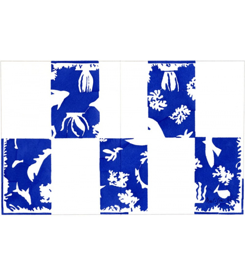 Les deux grands panneaux décoratifs de la Polynésie, créés par Matisse en 1946, sont reproduits au pochoir à la gouache sur papier vélin d’Arches.