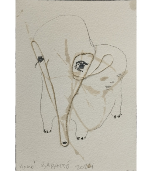 Ce tirage est accompagné d’un dessin original sur papier signé de l’artiste et rehaussé de fils de coton et d’acrylique.