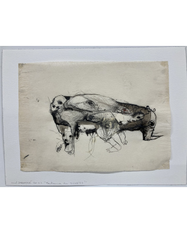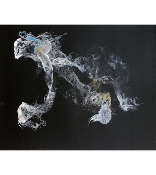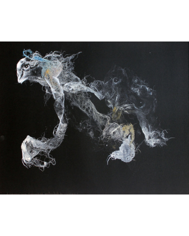 Monotype, encre et dessin sur papier noir