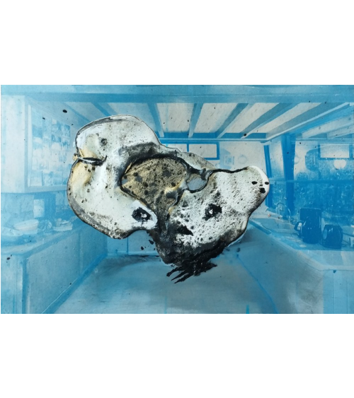 Huile et pigments, photographie sérigraphiée sur tôle
