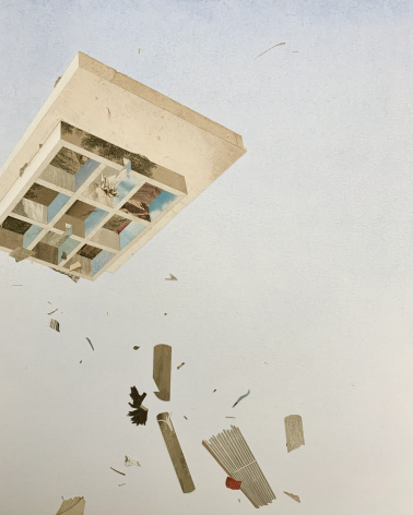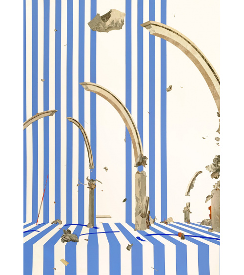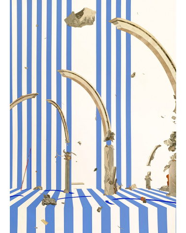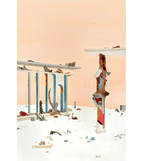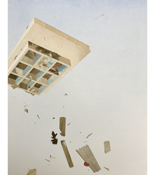Les collages de Claire Trotignon proposent des paysages où le vide règne en maître et d’où surgissent des ruines qui semblent tout autant appartenir au passé le plus antique qu’à un futur déjà obsolète. Constitués de collages de morceaux de gravures anciennes, de dessins et de gouaches, elle produit des collisions temporelles faites de clins d’œil à la grande histoire de l’art. Son style et sa composition d’une grande rigueur lui ont permis d’exposer dans de grandes institutions françaises et ont été dernièrement récompensés par plusieurs prix (Prix Pierre Cardin, Prix Carta Bianca...).