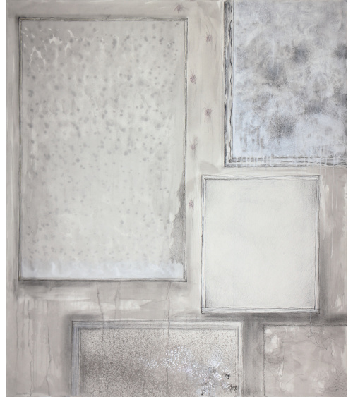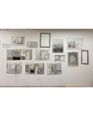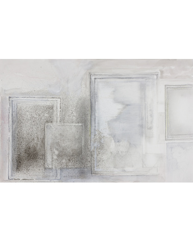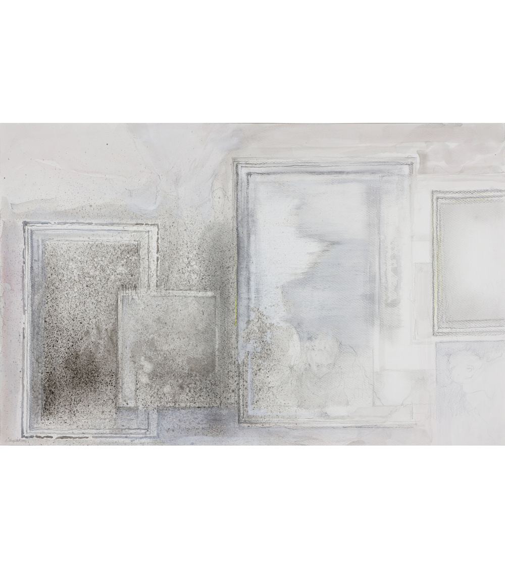 Le travail de Christian Lhopital joue ouvertement avec les codes de la représentation en art. La série de dessins que nous présentons prend pour sujet un ou des cadres sur un mur. Il y aurait donc là une sorte de mise en abyme où le dessin représente le degré zéro de l’art : un mur blanc avec un cadre vide. Mais en observant avec attention, on découvre rapidement que ce vide est un leurre. Chaque œuvre dévoile mille détails qui vont de la texture d’un mur d’où semble surgir quelques figures fantomatiques jusqu’à la fausse transparence des coloris qui voile autant qu’elle découvre. Rien n’est joué ici. Le hors-champ y conditionne la composition. L’espace dans l’espace, la fenêtre dans la fenêtre, le cadre du dessin révélant d’autres cadres ne seraient donc que des projections mentales s’interrogeant ouvertement sur la nature de l’art, sur ce qu’elle livre et donne à voir. Ce qu’elle masque et cache aussi. On ne s’étonnera donc pas si l’abstrait y côtoie le figuratif. Ce savant brouillage est aussi celui de l’échelle, à la fois celle de l’œuvre, tantôt petite, tantôt d’un format plus conséquent, mais aussi l’échelle des rapports de formes et de figures entre elles. Le monumental n’est pas une question de dimensions mais bien dans une disjonction entre une figure et son environnement.