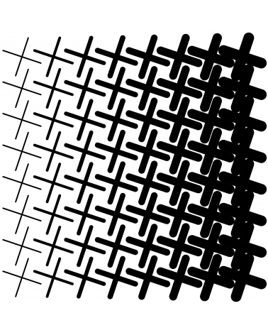 Depuis plusieurs mois, Vera Molnar ne cesse de dessiner, décliner et imaginer « mille » variations, mille façons de faire, mille sortes de constructions ou déconstructions, explorant les possibilités de figurer des croix par un jeu libre de lignes et d'intersections. Toutes sortes de croix !