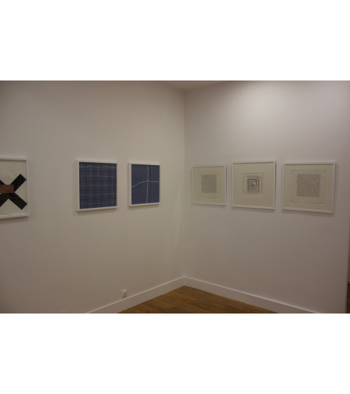 Vera Molnar tenait aussi à présenter en vis-à-vis quelques dessins plus anciens issus des années 1950 et 1970. Ils permettront de faire comprendre aux collectionneurs la façon dont sa pratique fonctionne, par agrégation de questionnements sur ce que peut l’humain et ce que peut la machine. Loin d’être en concurrence l’un avec l’autre, humain et machine sont pour Vera Molnar des entités en dialogue constant, chacune étant dotée de faiblesses, mais aussi de qualités. Si dans le travail de Vera Molnar les lois du hasard occupent une place essentielle comme point de jonction entre l’esprit humain et la puissance calculatoire des ordinateurs, c’est aussi une manière de convoquer les aléas d’une rigueur toujours placés sous le signe de l’imaginaire.