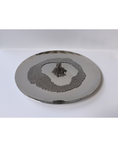 A travers « Électrons libres », Vladimir Skoda créé un univers singulier et captivant où s’entrechoquent, s’attirent ou se repoussent d’innombrables billes d’acier poli ou d’inox aux reflets mouvants. Depuis plusieurs années, il travaille, le métal poli et le mouvement, en déclinant la sphère sous toutes ces formes, grandes ou petites. Il est tout préoccupé par ce que peut produire le processus de son déplacement et sa métamorphose dans l'espace.